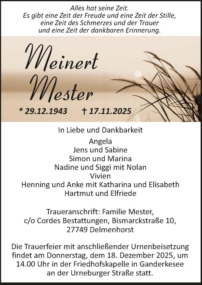 Tag, Datum, Uhrzeit und Ort der Trauerfeier oder Beerdigung werden angegeben,somit entfällt eine persönliche Einladung der Trauergäste.